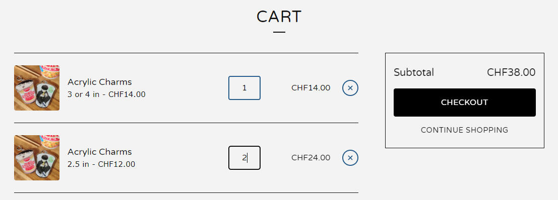 5. You can change the quantity of your items in the blue box. If you want to buy more of the other products, click “CONTINUE SHOPPING”. Repeat previous steps. If you’re done, click “CHECKOUT”.
