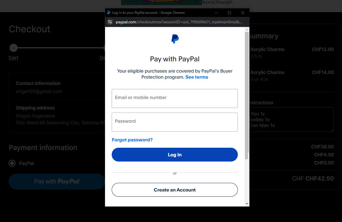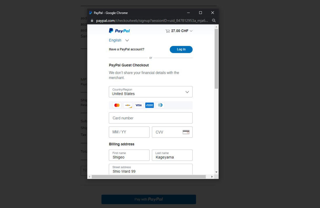 7. Click “Pay with PayPal”. A new window will pop up, which is the secure PayPal browser.